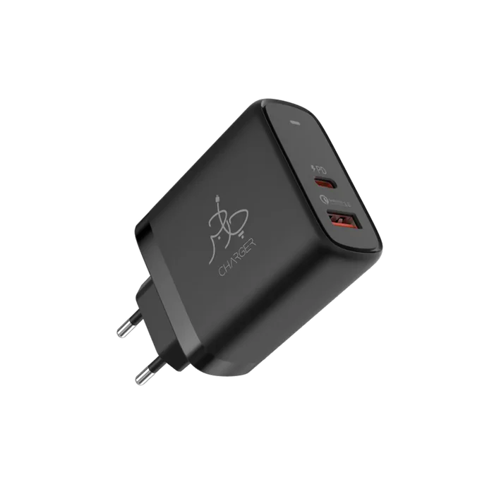 Introducing our Dual-Port Wall Charger, equipped with a PD USB C Port & a Quick Charge USB A port, that powers up two devices simultaneously at high speed. This sleek and compact charger-PD (USB C Port)-has a maximum output of 45W that ensures high-speed charging for iPhone, iPad, MacBook Air, and Super Fast Charging for Samsung & other fast-charging devices.